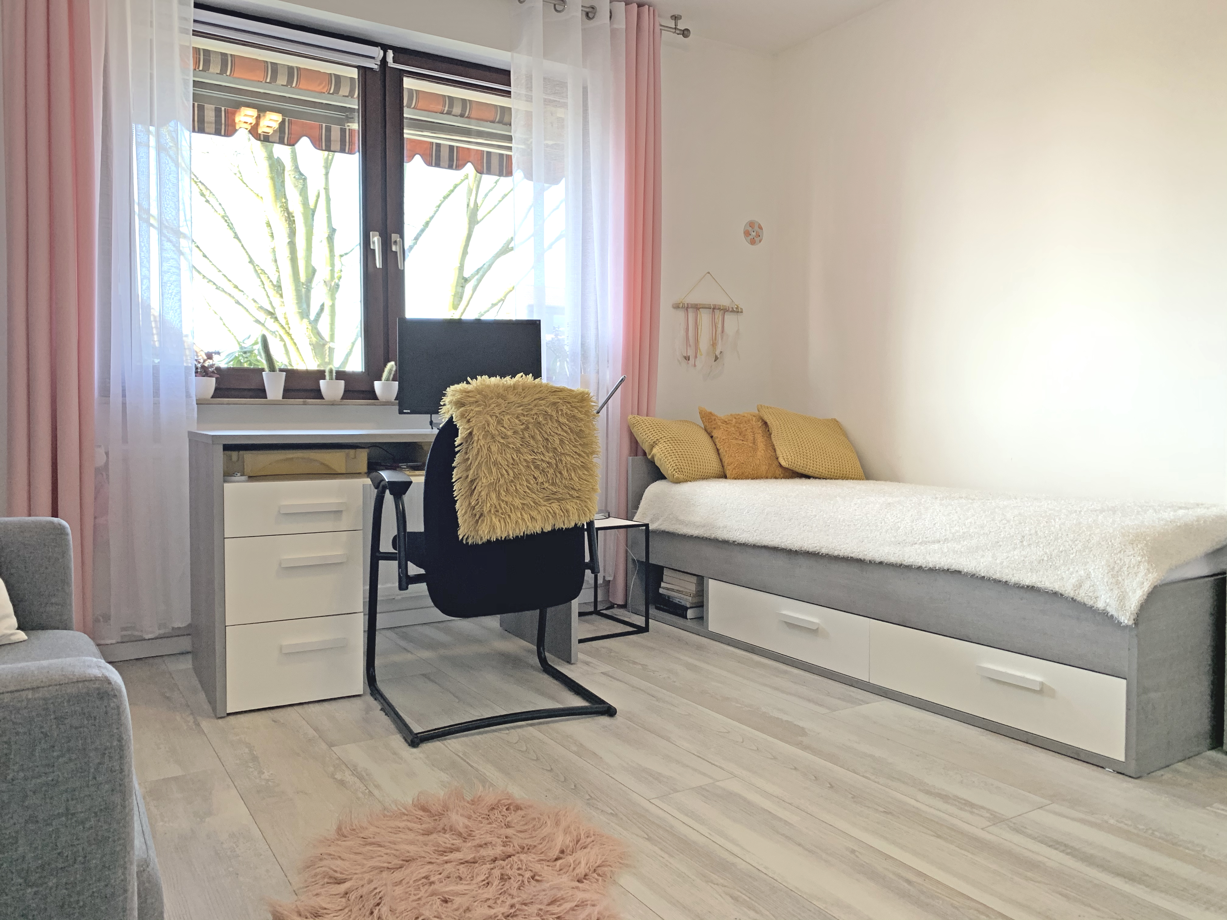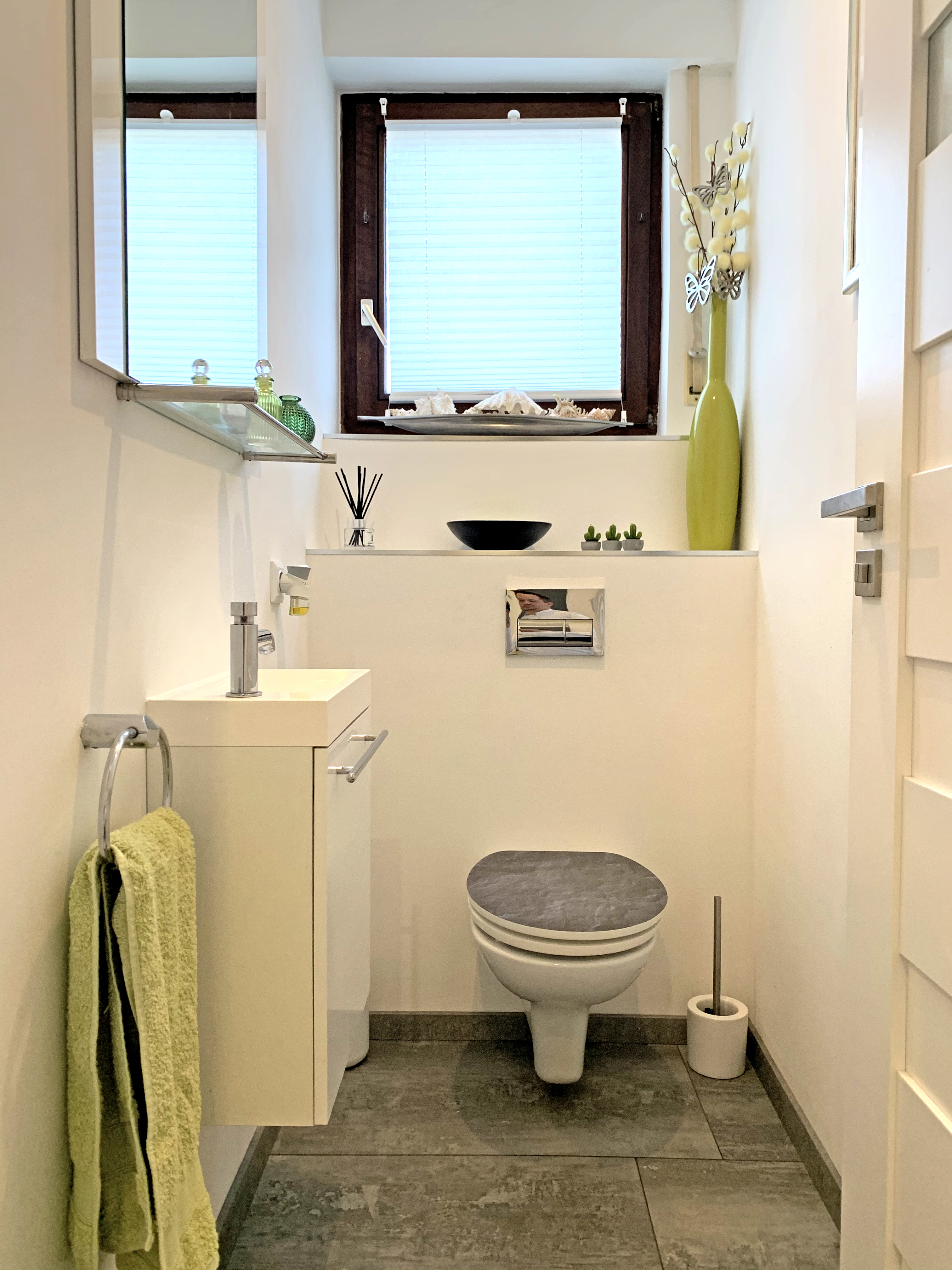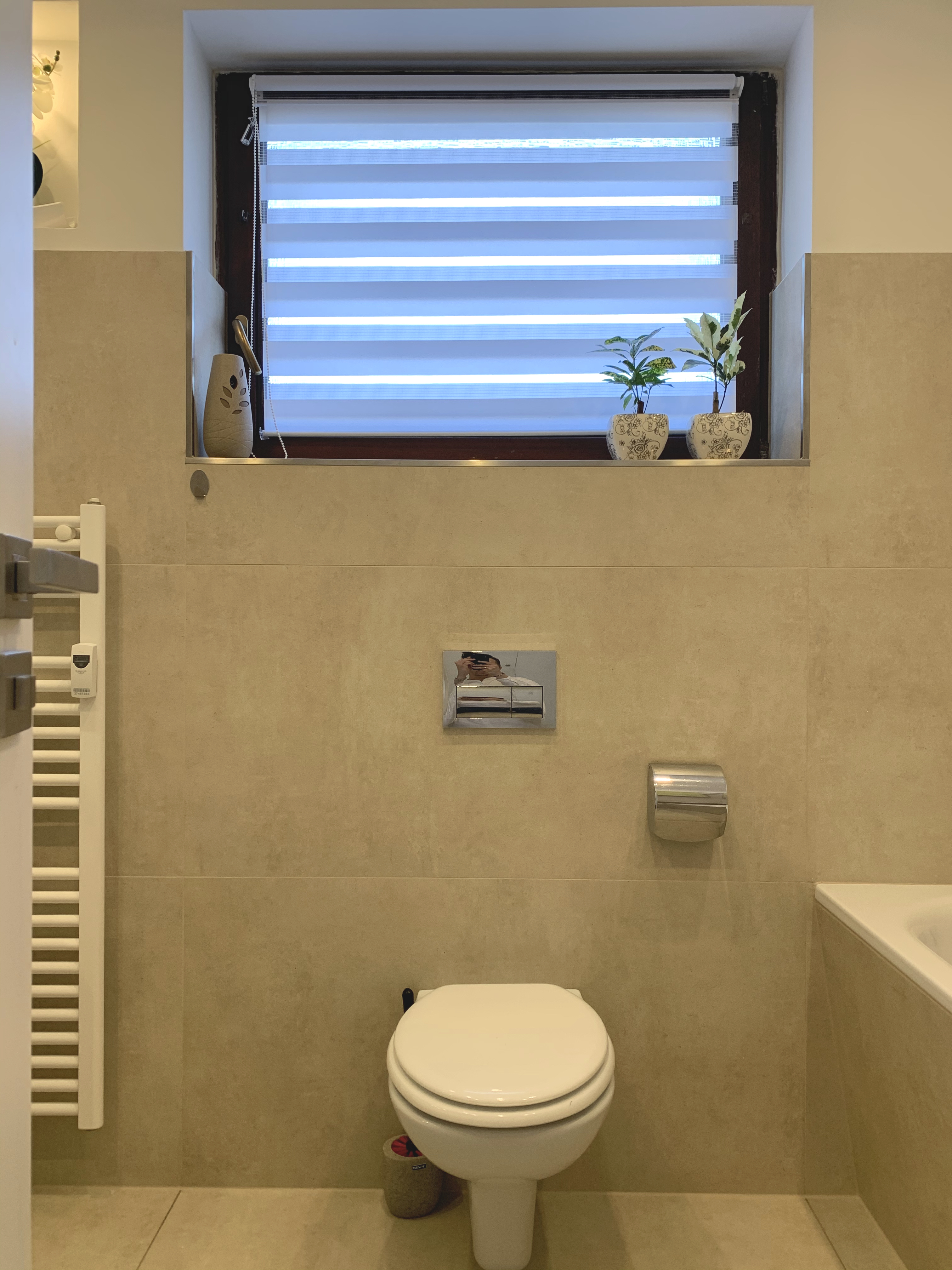 - Ausstattung des Bades Badewanne, Dusche, Fenster