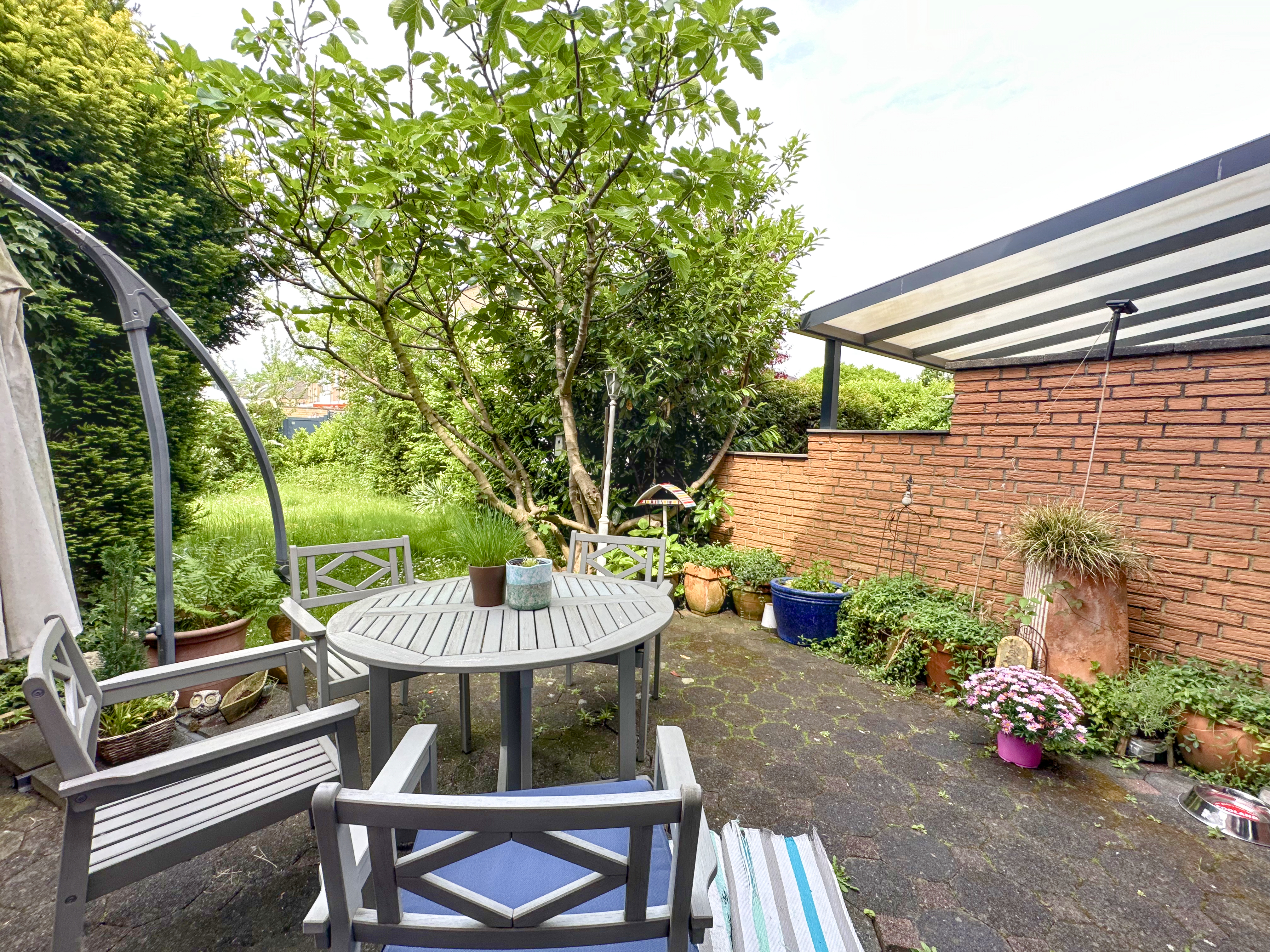 Der gemütliche Sonnengarten mit west Ausrichtung samt Terrasse und einer Sonnenmarkise lädt zum verweilen ein und bietet Raum für persönliche Entfaltung bietet.