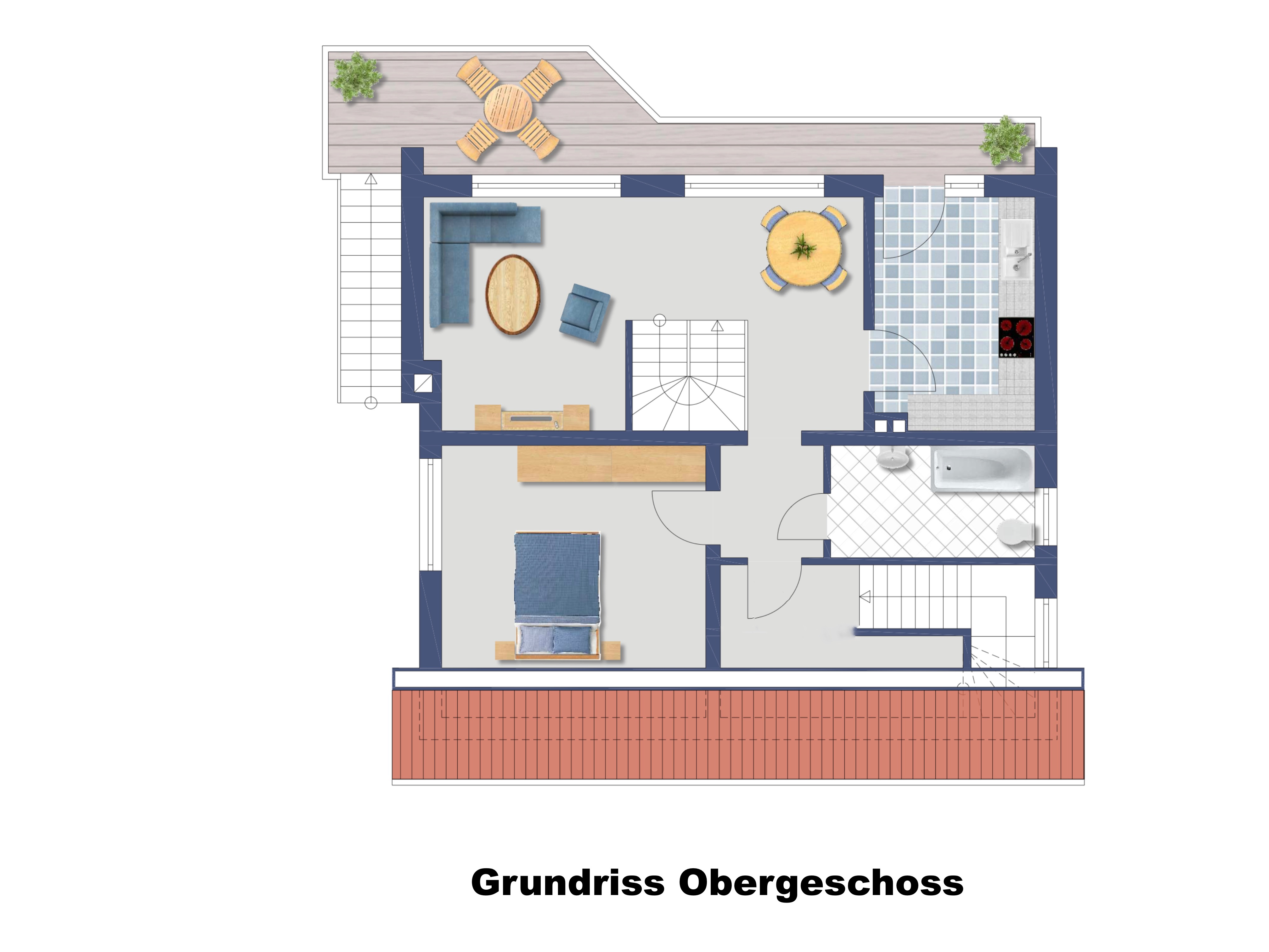 Die Immobilie ist mit zwei Einbauküchen ausgestattet, welche auf Wunsch kostenfrei übernommen werden können. Im Erdgeschoss befindet sich ein Tageslichtbadezimmer mit Badewanne, während das Obergeschoss über ein weiteres helles Badezimmer mit Dusche und Badewanne verfügt. Ein großzügiger Balkon im Obergeschoss lädt zum Entspannen ein.