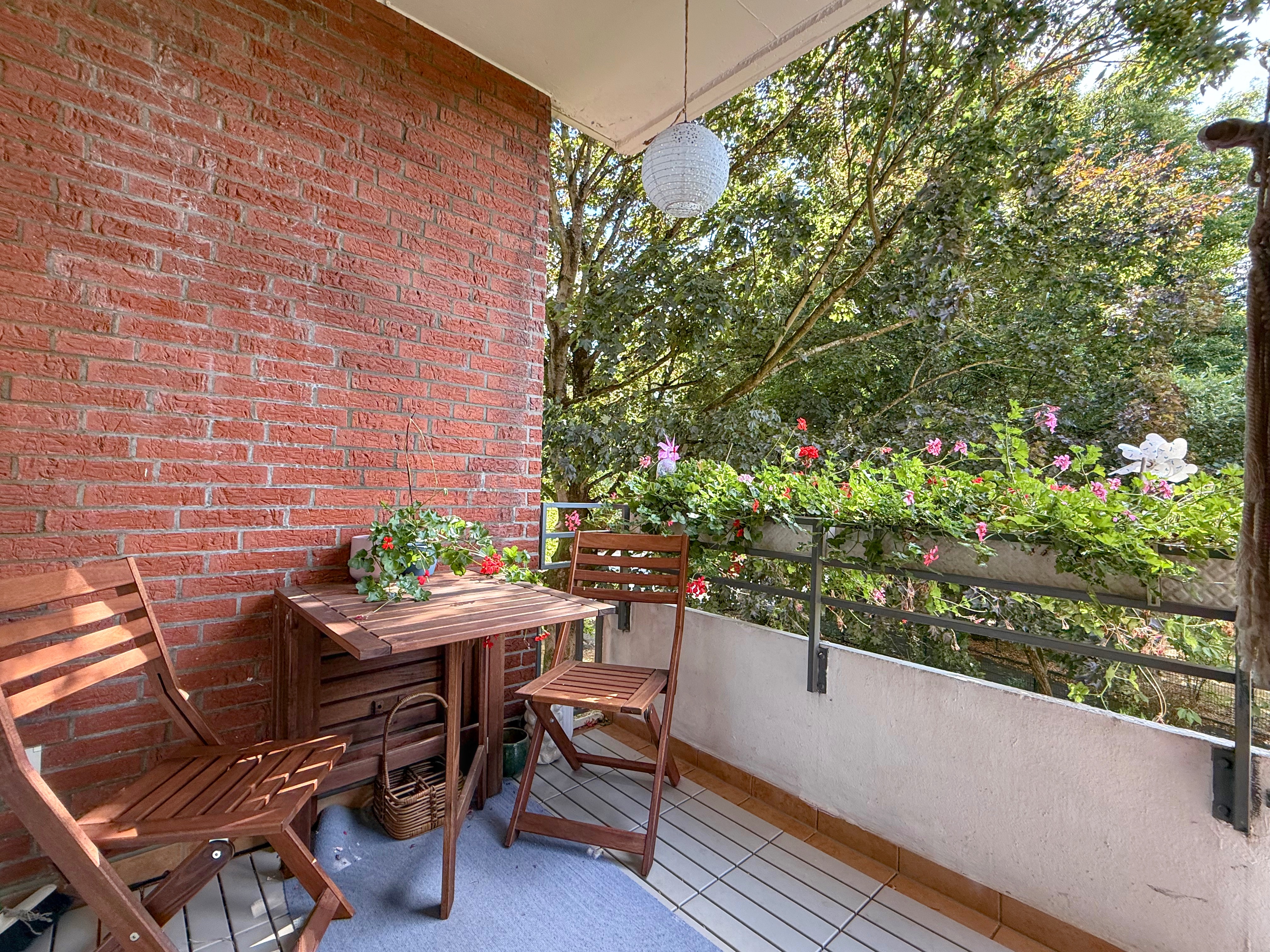 Ein Sonnenbalkon mit Süd – Ost Ausrichtung lädt zum verweilen ein und ist vom Wohnzimmer aus zu begehen.