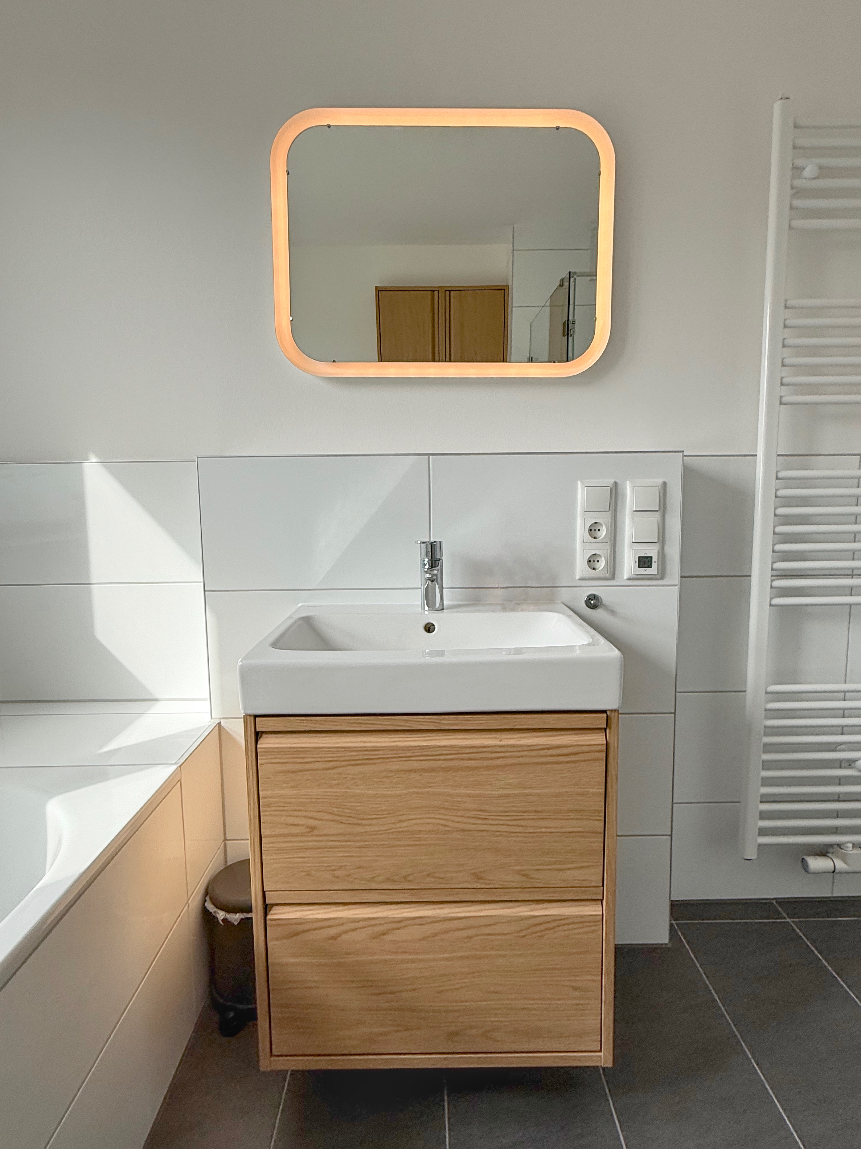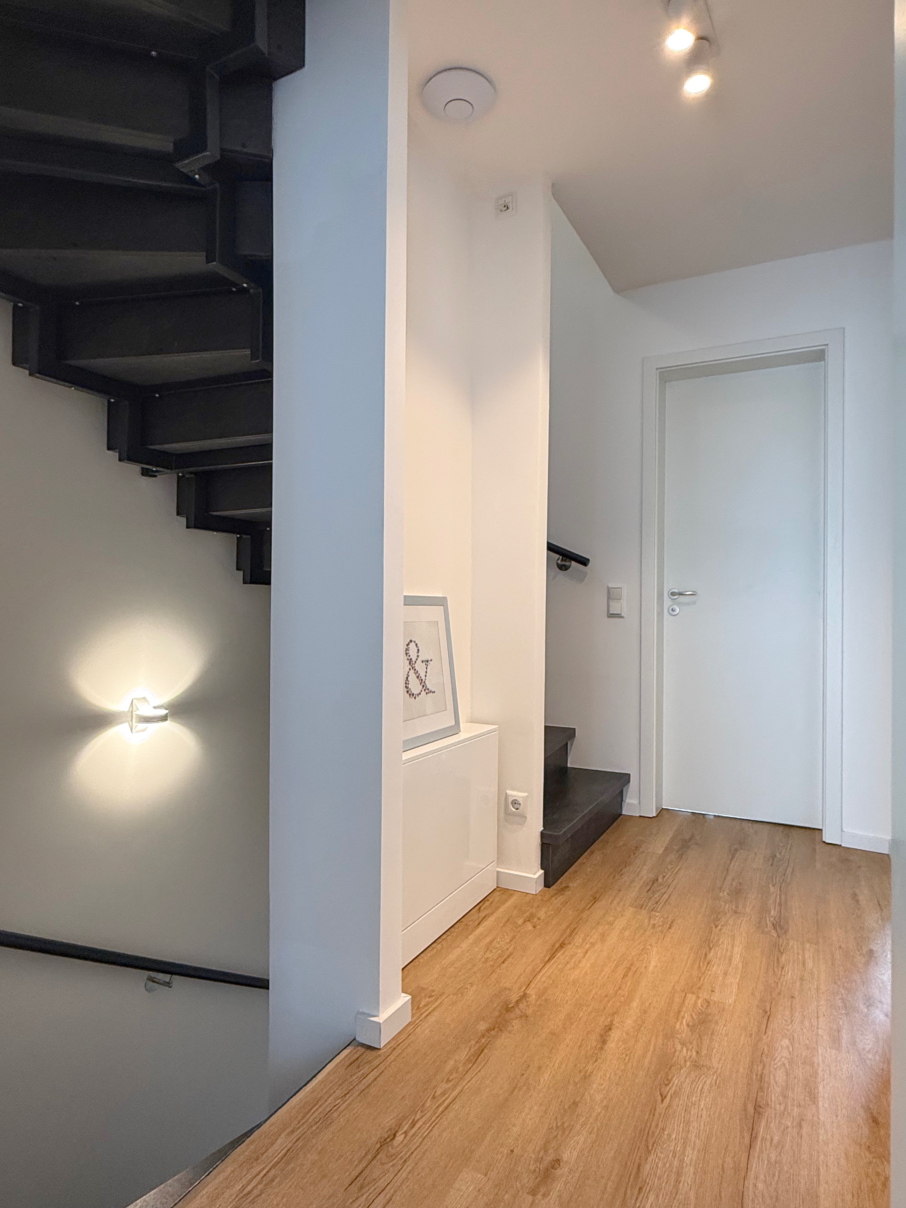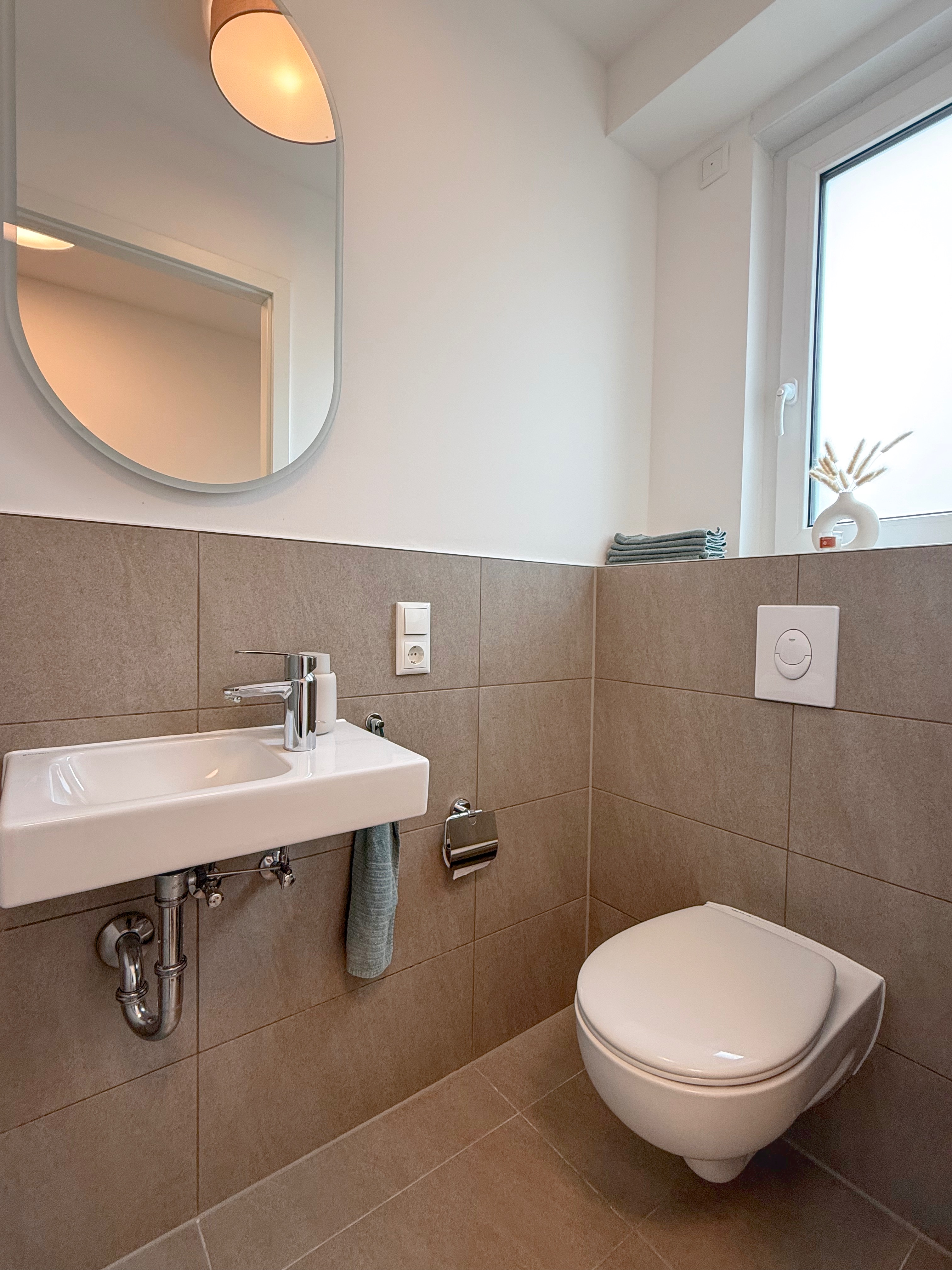 In allen Wohnräumen wurde ein hochwertiger und einheitlicher Bodenbelag verlegt, der dem Haus ein harmonisches Ambiente verleiht. Das Badezimmer und das Gäste-WC sind mit modernen Fliesen ausgestattet und zusätzlich mit hochwertigen Grohe-Armaturen versehen.