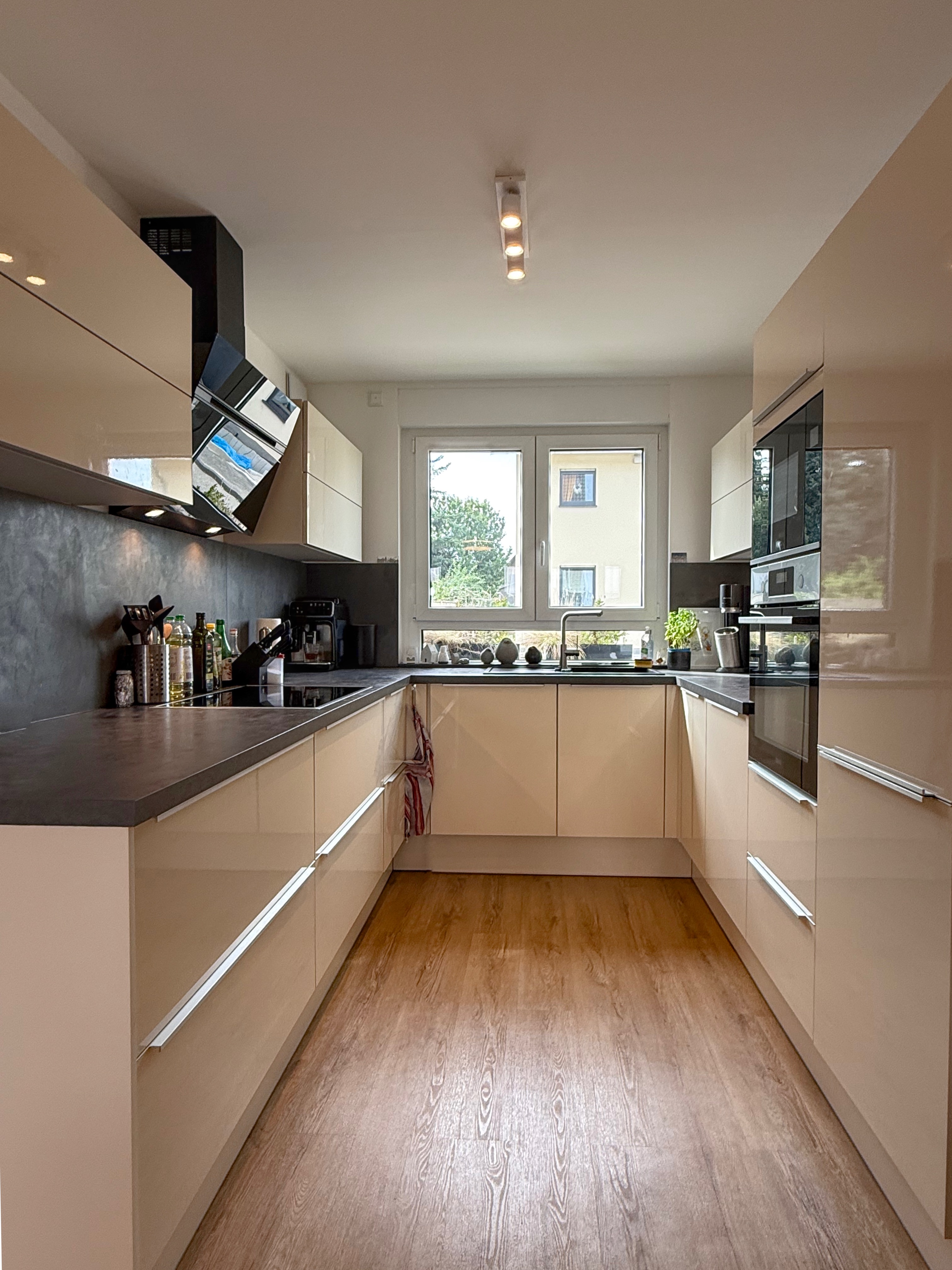 Die Einbauküche ( Preis 7.000 € ) überzeugt nicht nur durch Funktionalität, sondern auch durch ihr modernes Design, das sich nahtlos in das moderne Wohnkonzept einfügt.