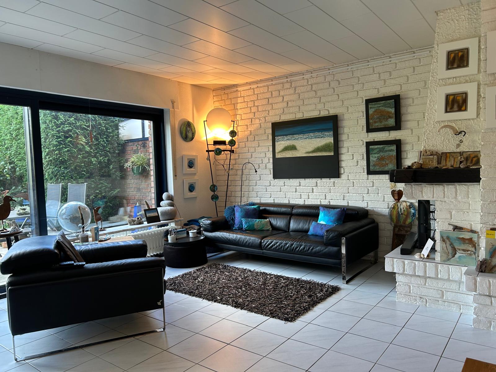 Der offene Kamin, zur Nachrüstung mit einer Kaminkassette, ergänzt den Wohlfühlcharakter in Erdgeschoß.