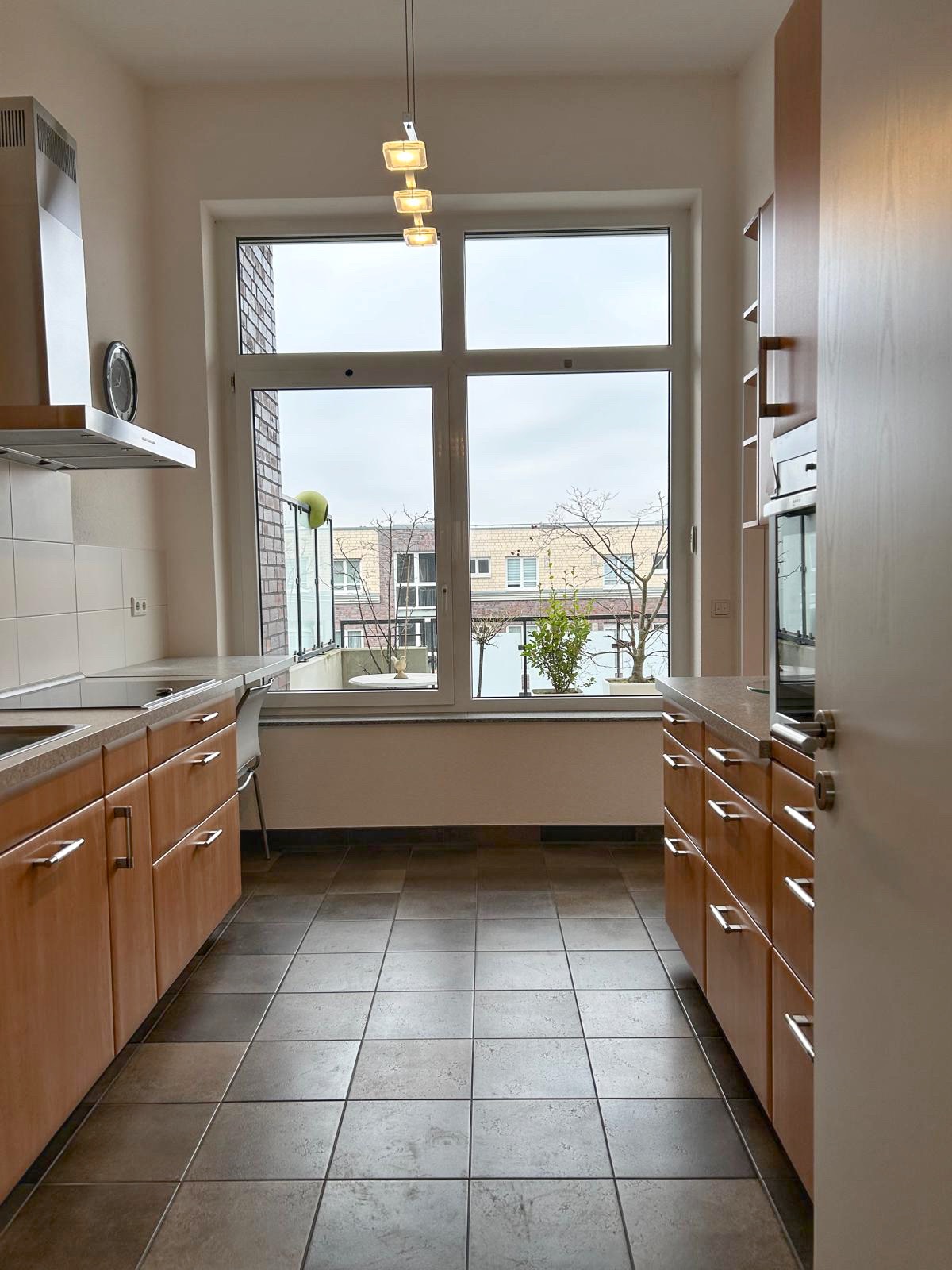 Der repräsentative Wohnbereich samt Küche ist mit sehr hohen XXL-Fensterflächen lichtdurchflutet und in dieser Form nur sehr selten zu finden. Die Deckenhöhe im Wohnbereich und in der Küche liegt bei über 3 Metern und vermittelt einen exklusiven Wohnstil.