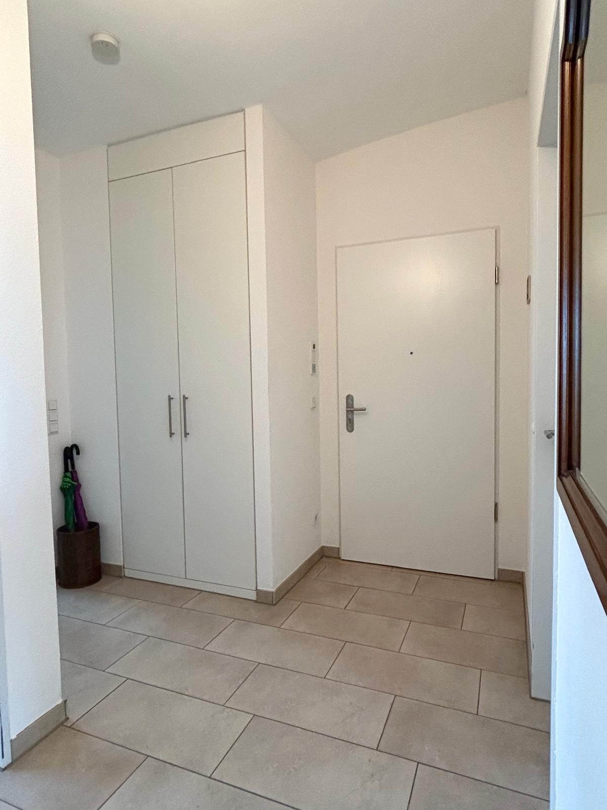 Die Diele verfügt über einen großen Wandschrank. Neben dem Hauptbad, welches vom Schlafzimmer aus zugänglich ist, befindet sich ein Abstellraum mit einem Waschmaschinenanschluss, somit kann die Waschmaschine wahlweise in der Wohnung oder im Waschkeller aufgestellt werden. Die vorhandene Einbauküche ist im Kaufpreisangebot enthalten. Die Innentüren und Türzargen sind in der Farbe Weiß gehalten.