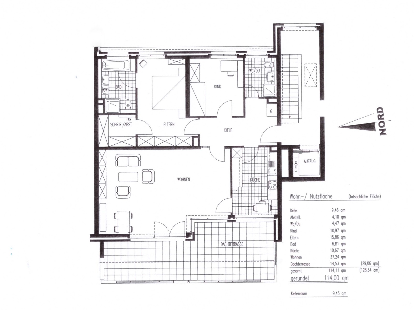 Zu jeder Wohnung gehört ein Kellerraum, im Waschkeller kann die eigene Waschmaschine samt Trockner aufgestellt werden. Außerdem steht den Bewohnern ein Fahrradkeller zur Verfügung. Die moderne Gas-Zentralheizung generiert auch die Warmwasserversorgung.