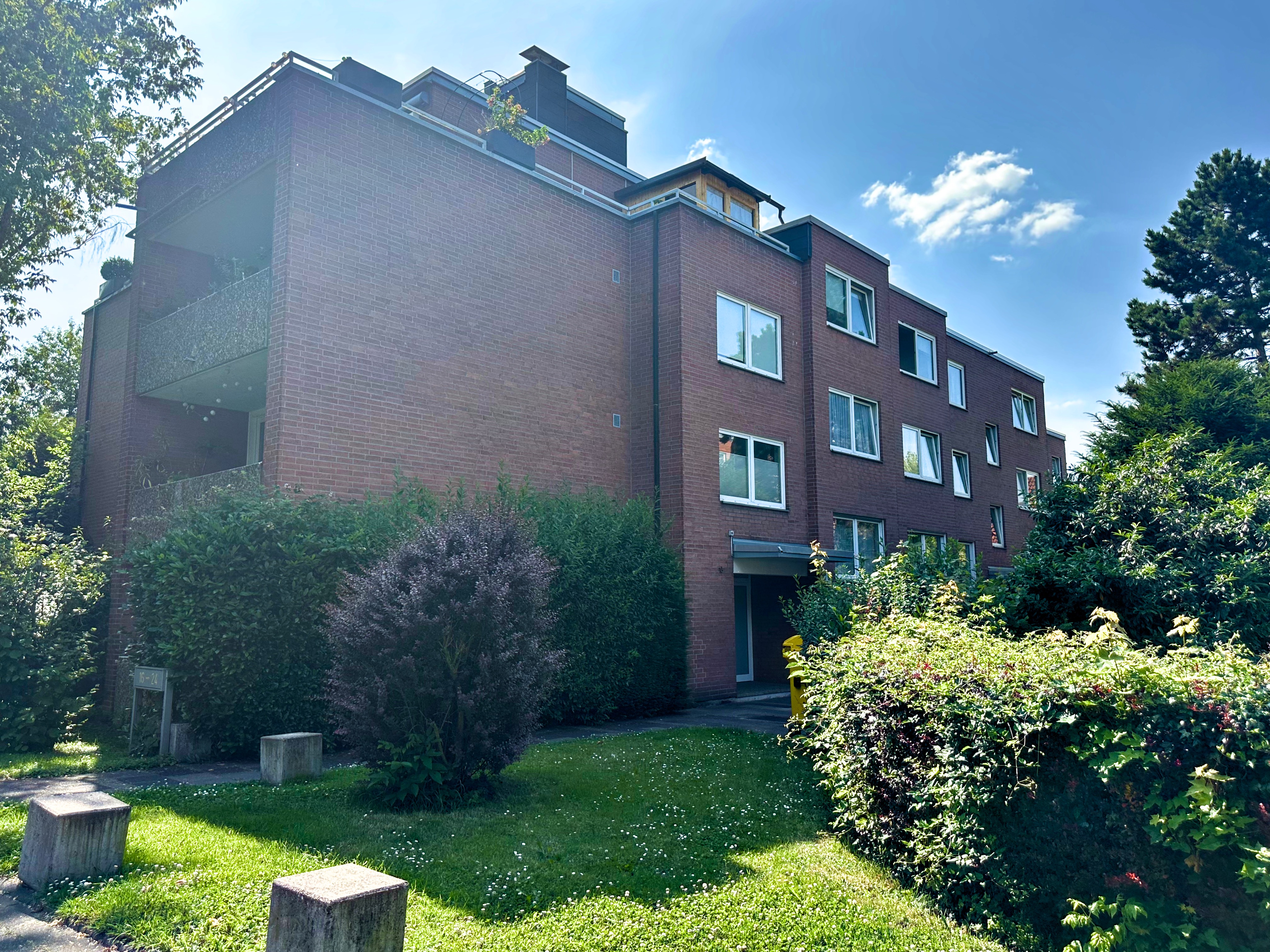 Das gesamte Wohnquartier präsentiert sich äußerst gepflegt und wird professionell verwaltet. Zur Wohnung gehört ein eigener Tiefgaragen-Stellplatz ( 15.000 € ) , der über einen direkten Zugang vom Keller bequem erreichbar ist.