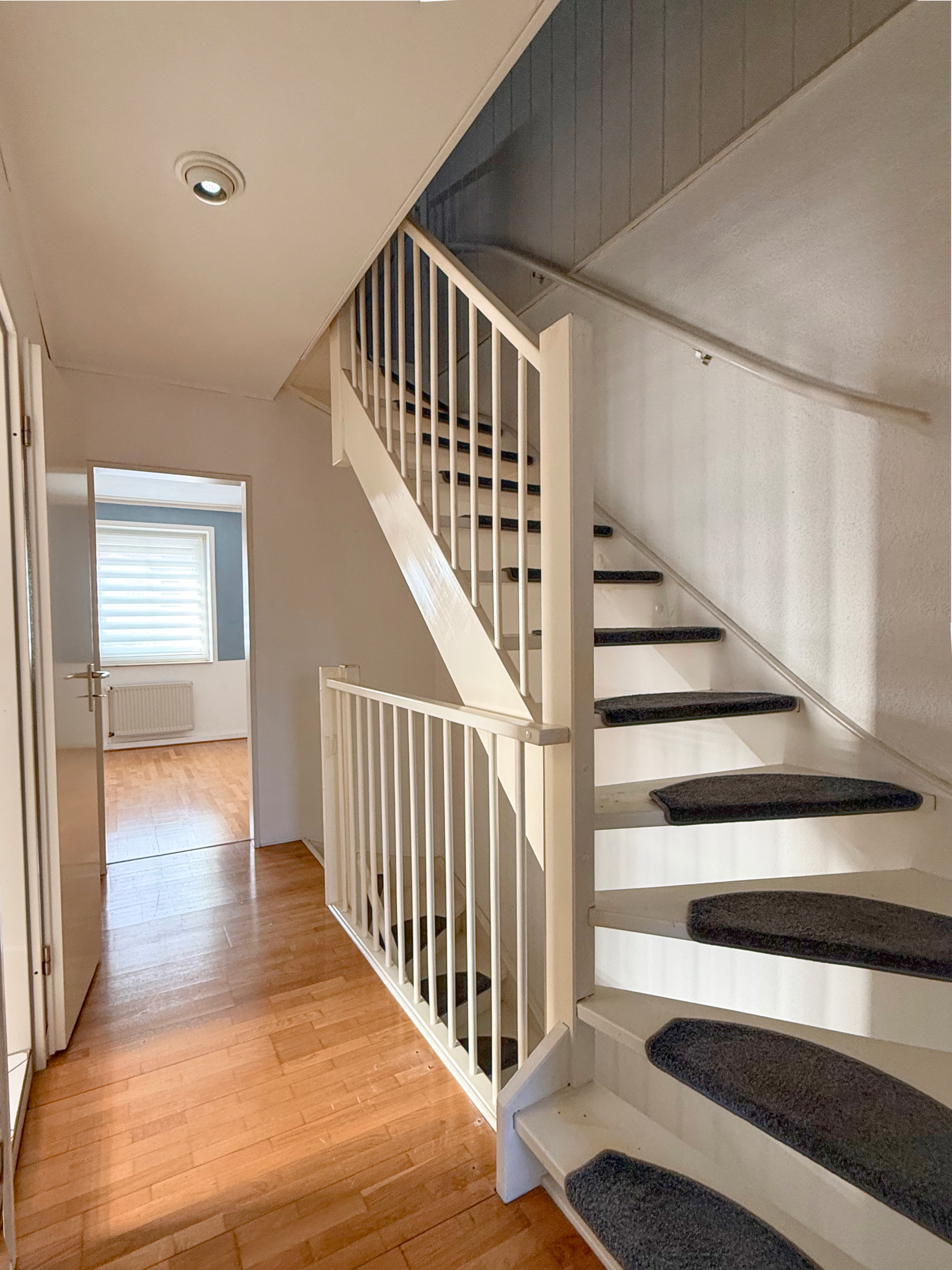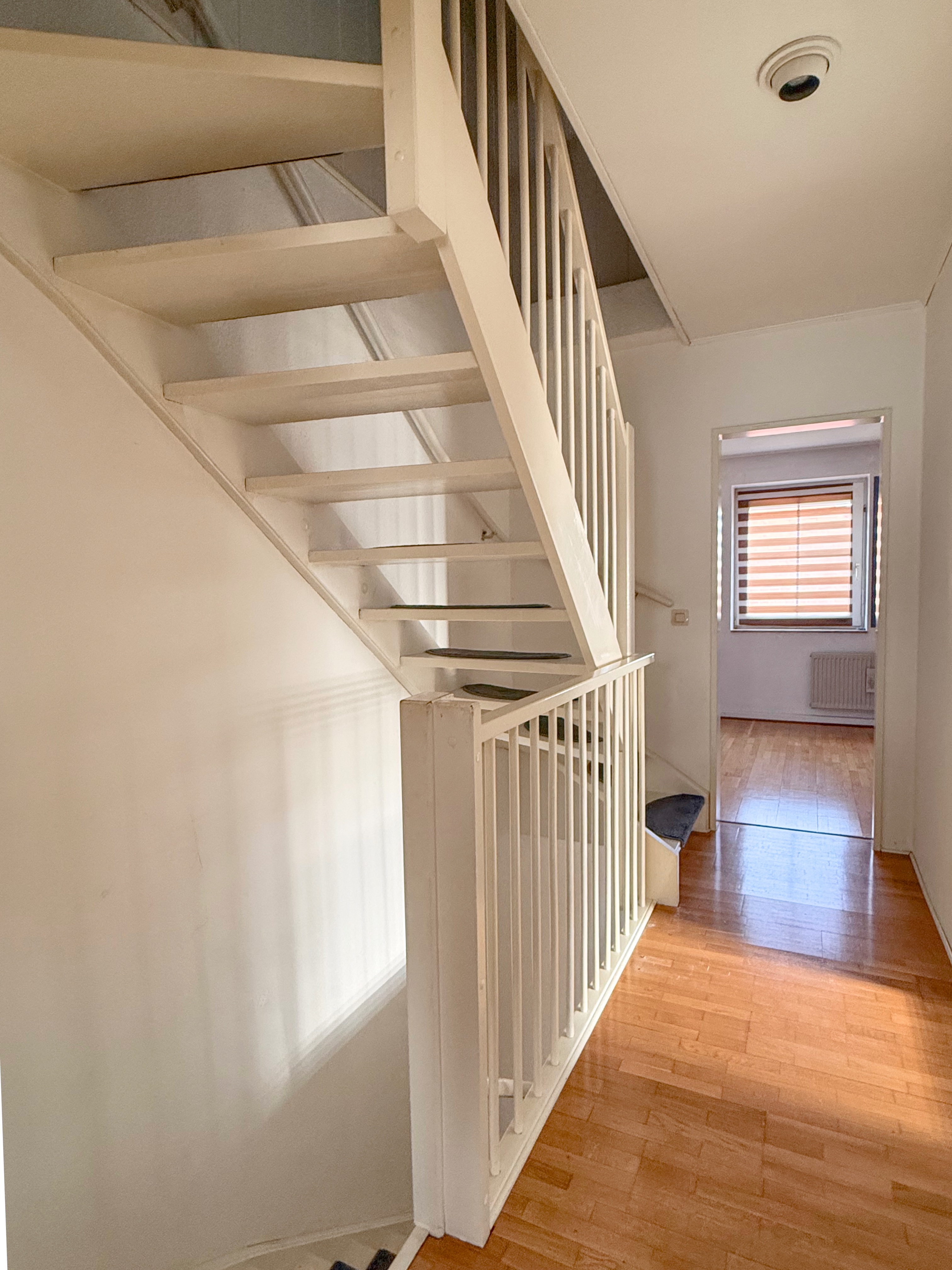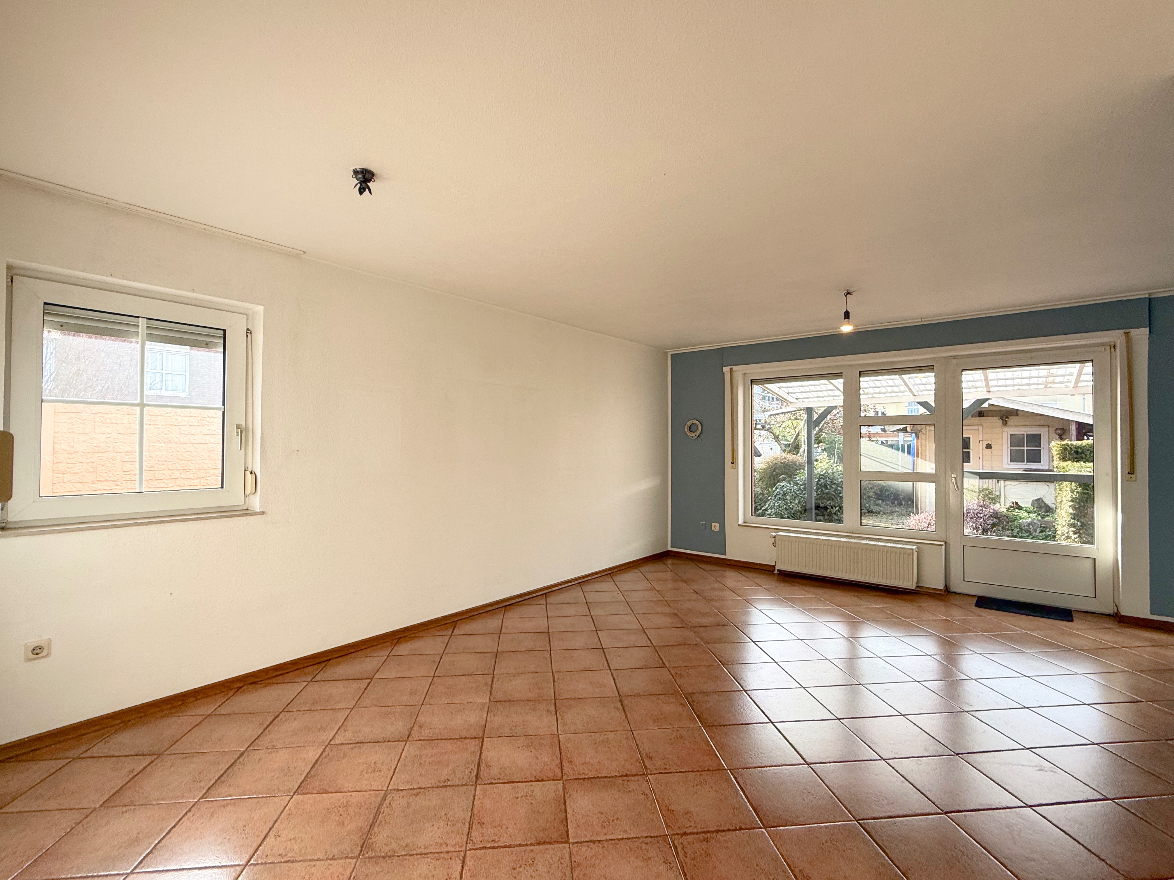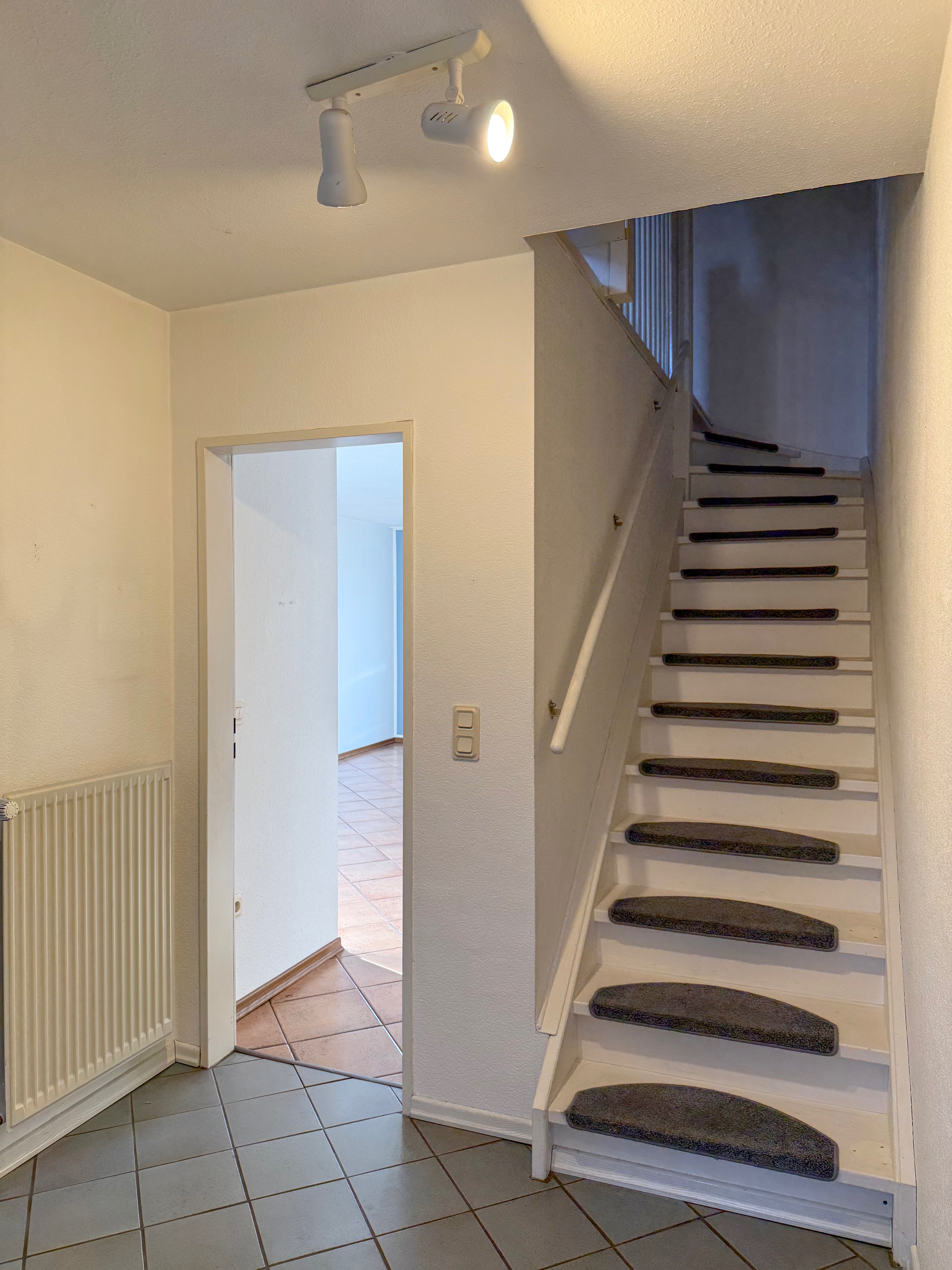 Das Erdgeschoss ist mit pflegeleichten Fliesen ausgestattet, während im Obergeschoss ein Parkettboden für eine angenehme Atmosphäre sorgt.