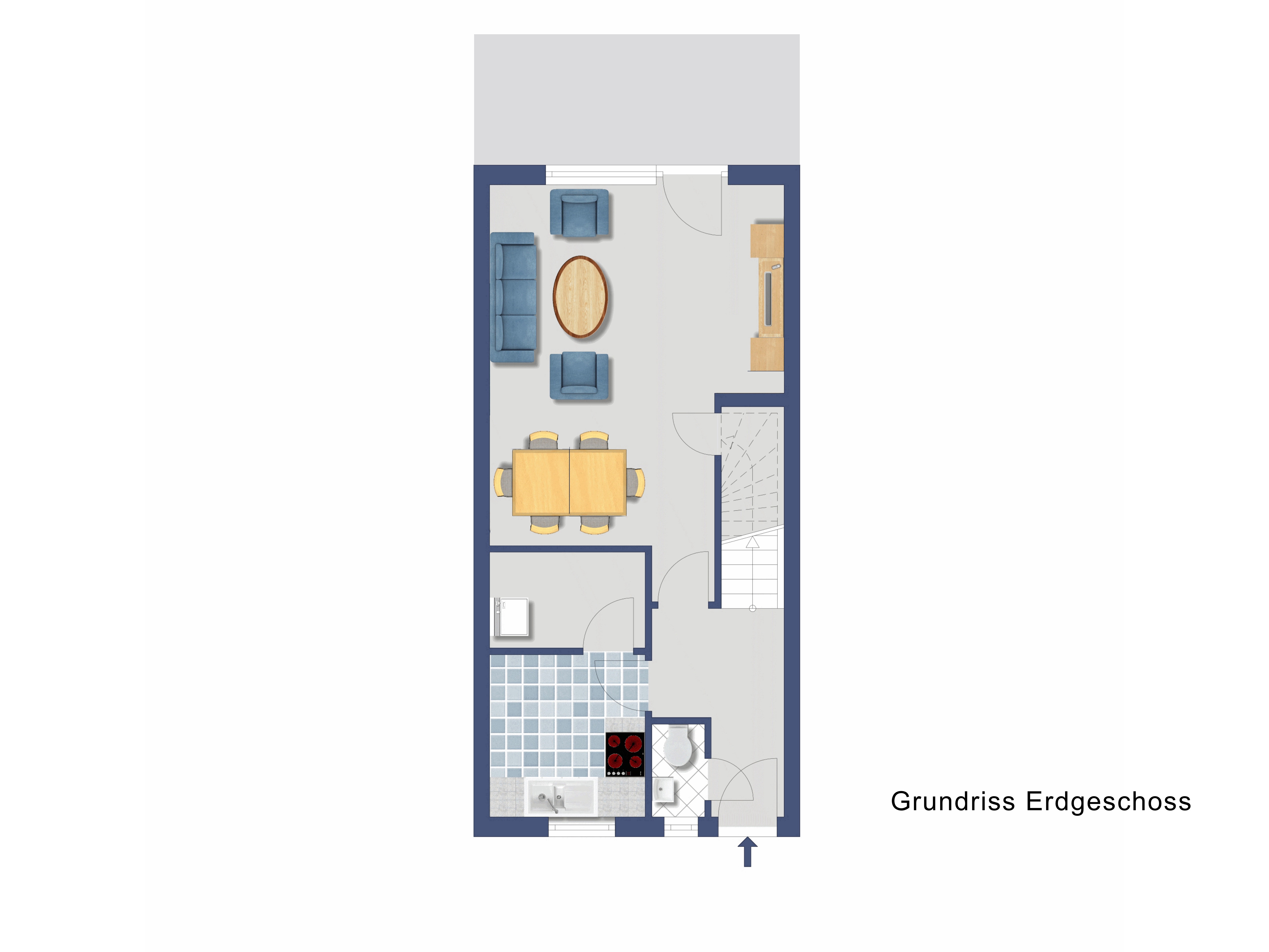 * Erdgeschoss mit Fliesen ausgestattet