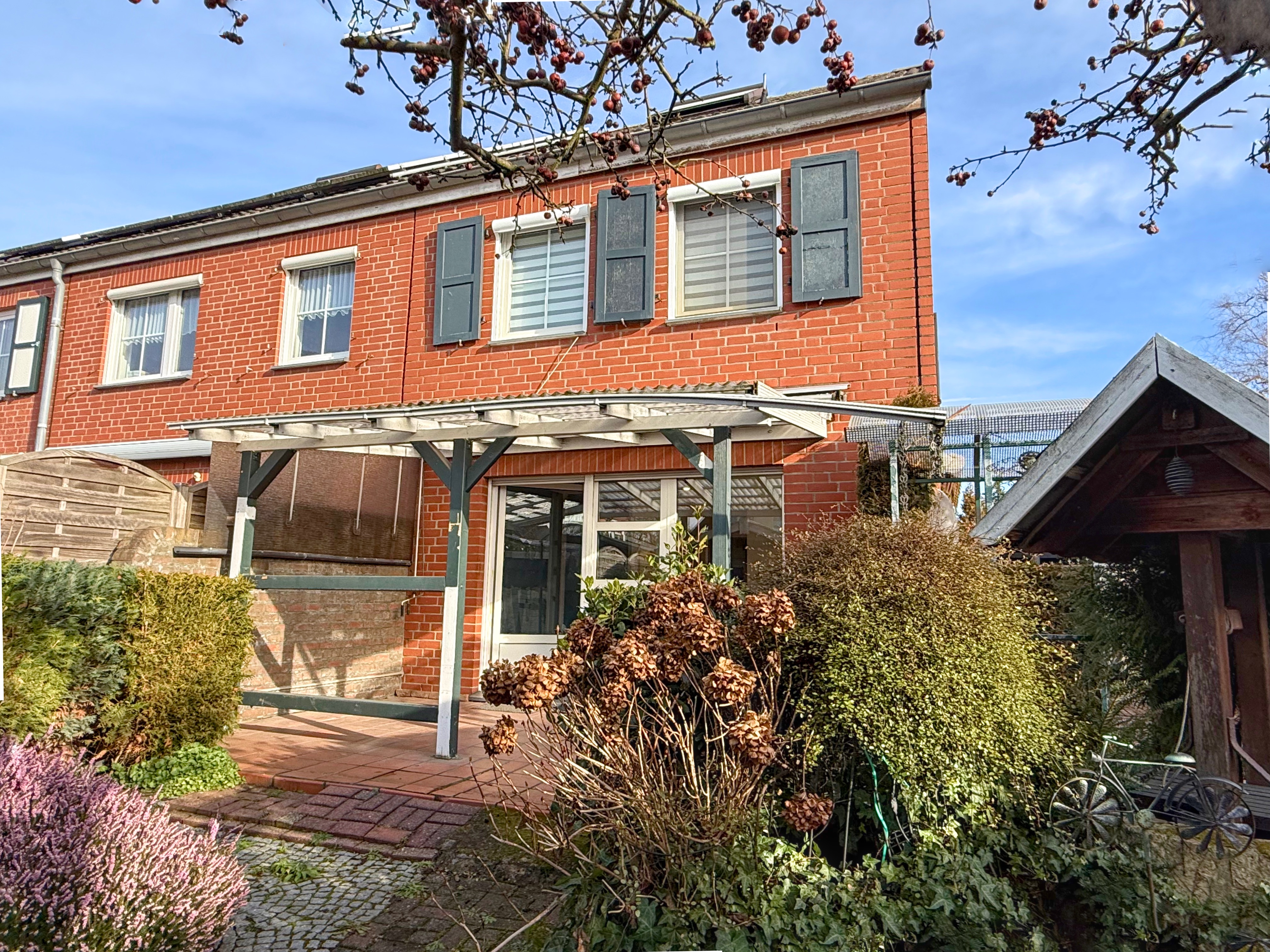 Die verklinkerte Fassade sowie der insgesamt sehr gepflegte Gesamtzustand unterstreichen den wertigen und langlebigen Charakter der Immobilie.